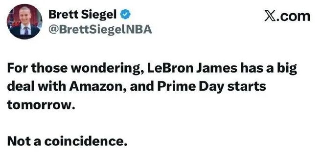 名记Siegel对此爆料,詹姆斯与亚马逊签约了一份大合同,这绝非偶然。那么若不是詹姆斯宣布把天赋带到亚马逊为未来铺路,大概率便是他向全世界宣告25-26赛季乃其球员生涯最后一舞。